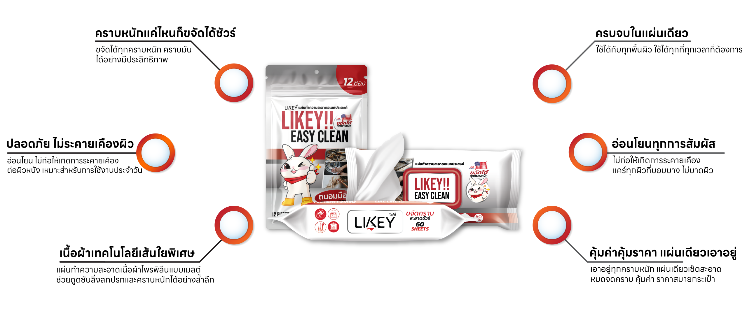 แผ่นทำความสะอาดอเนกประสงค์ LIKEY กับ Character "LIKEY BOY" กระต่ายซุกซน พร้อมลุยทุกสถานการณ์ นำเสนอแผ่นความสะอาดพิเศษขั้นกว่ากับเนื้อผ้าลวดลายดอกเดซี่ วัสดุแผ่นหนาขึ้น 2 ชั้น เหมาะสำหรับการทำความสะอาดคราบหนัก,คราบมัน,คราบเหนียวทุกพื้นผิวได้อย่างล้ำลึก ขจัดคราบสกปรกได้ทุกซอกทุกมุม ใช้งานง่าย พกพาสะดวก ในราคาสบายกระเป๋า